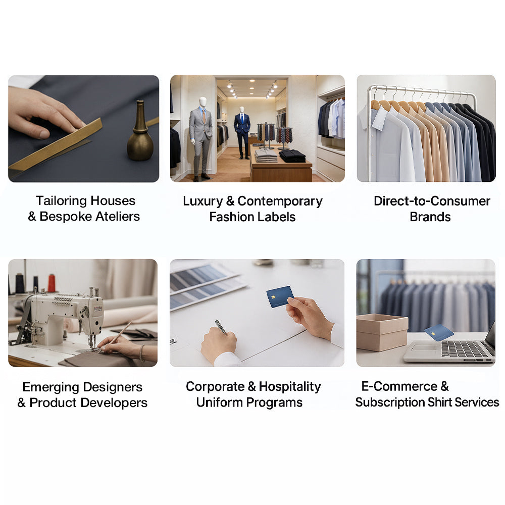 Made-to-Measure Shirt Manufacturing,Built at Scale.Supporting MTM,MTO,and low-volume production through a proven,technology-led manufacturing ecosystem.